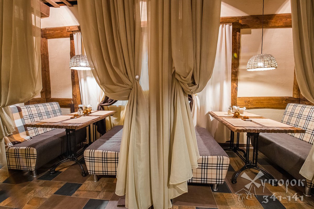 Ресторан хуторок расположен недалеко от воды! Он славится не только вкусными блюдами и напитками - мы берём оформлением внутри и вокруг. Если вы - ценитель красоты и эстетики, посетите наш ресторан.